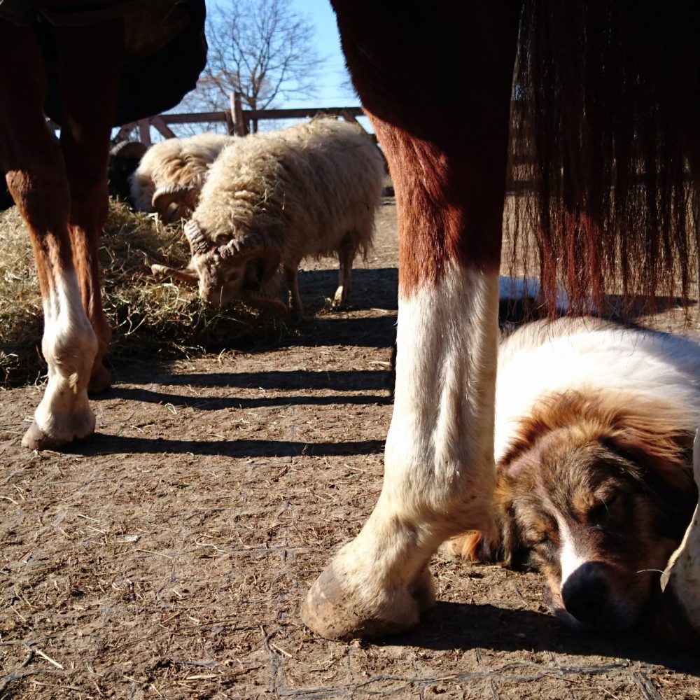 Meine Hunde leben das ganze Jahr über als Rudel zusammen mit ihrer gemischten Herde bestehend aus Pferden, Rindern, Schafen und einigen Hühnern auf fest eingezäunten Grundstücken (Knotengeflecht und Elektrozaun) mit den dazugehörigen Ställen. Auch Katzen kennen und tolerieren sie. Trotz Festzaun verfüge ich aber auch über Elektronetze, um die Hunde an andere Gegebenheiten zu gewöhnen. Zum Versorgen der Tiere bin ich mehrmals am Tag für mehrere Stunden vor Ort. Dabei kommt natürlich auch die individuelle Betreuung der einzelnen Hunde nicht zu kurz. Meine Grundstücke liegen siedlungsnah, aber trotzdem ländlich und sind täglich von vielen Spaziergängern, Radfahrern, Autos und Landmaschinen frequentiert. Daher sind meine Hunde neben ihrer Herde schon früh auch auf alle möglichen Umweltreize vorbereitet und geprägt. Ich lege größten Wert auf eine gute Sozialisierung der Welpen innerhalb und außerhalb ihrer Herde.
