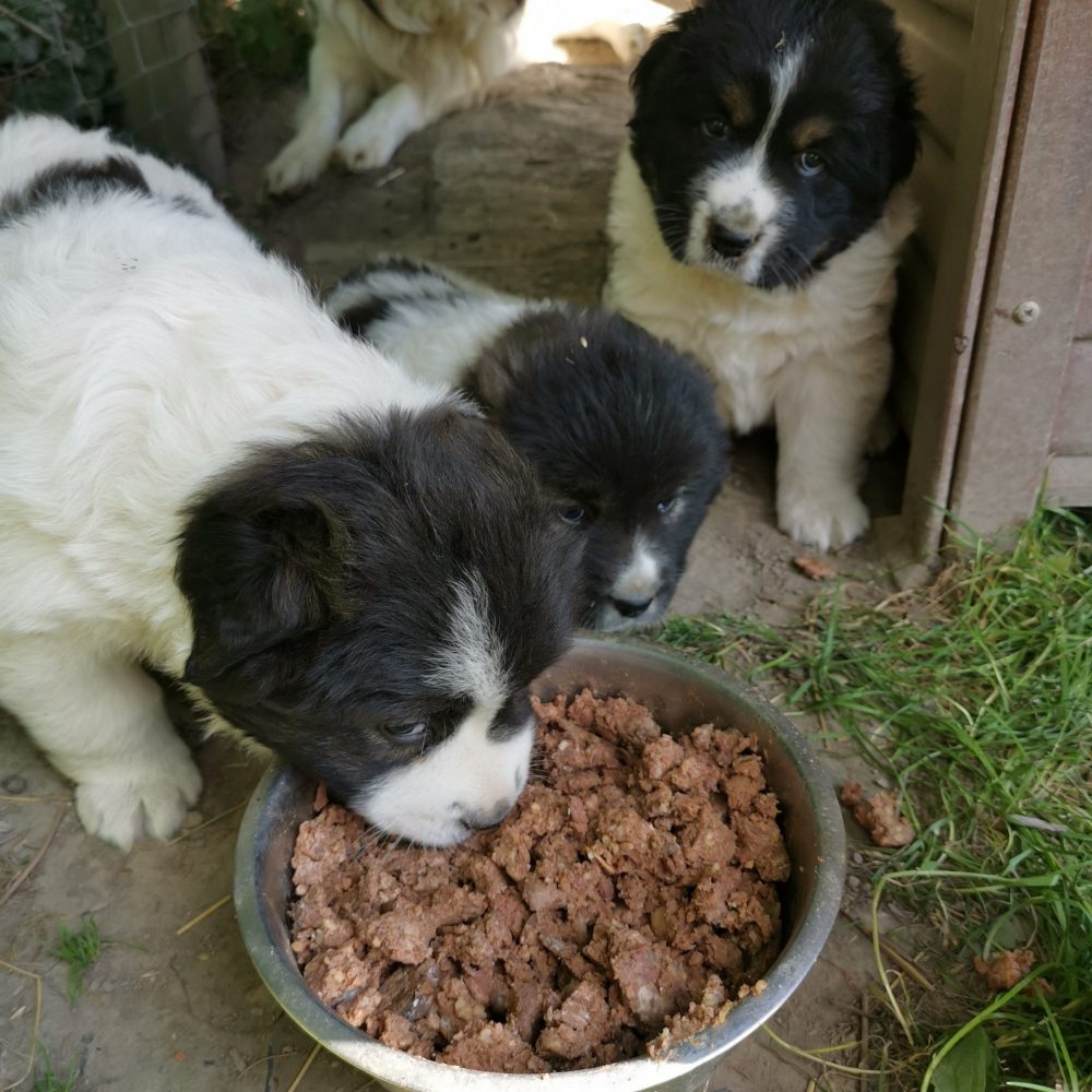 Ernährt werden die Welpen nach der Entwöhnung von der Muttermilch mit Welpentrockenfutter, welches anfangs noch eingeweicht angeboten wird. Zudem gibt es regelmäßig die klassische Nahrung des Ursprungslandes der Rasse, eine kräftige selbst gekochte Knochenbrühe mit etwas Fleisch, Getreidegries und Molke. Außerdem gehören hier auch Obst, Gemüse, Milch- und Getreideprodukte, rohes Fleisch und Knochen sowie trockenes Brot als Leckerli für alle Hunde zum Speiseplan.